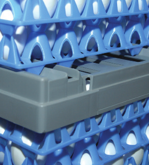 Lăzile de 360 de oua din plastic sunt stivuibile, se pot folosi cofraje de carton sau de plastic .