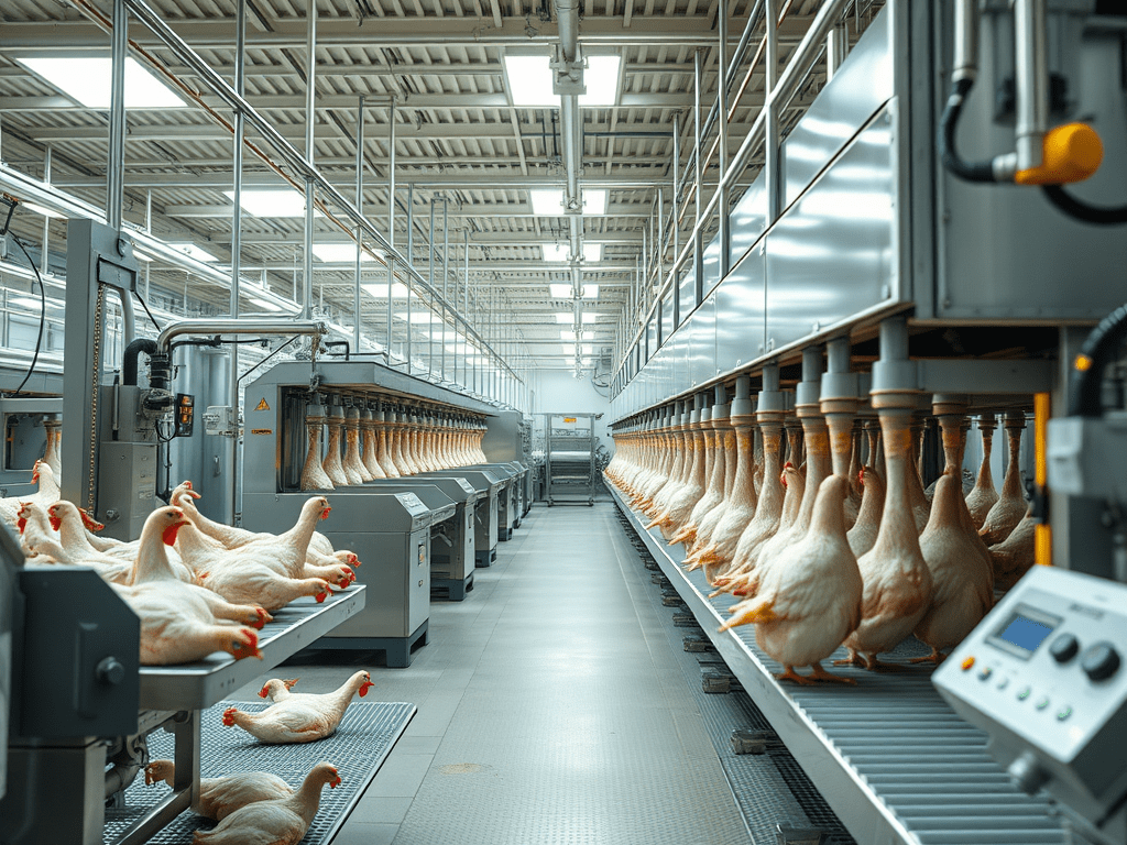 Abator broiler – până la 9.000 păsări/oră