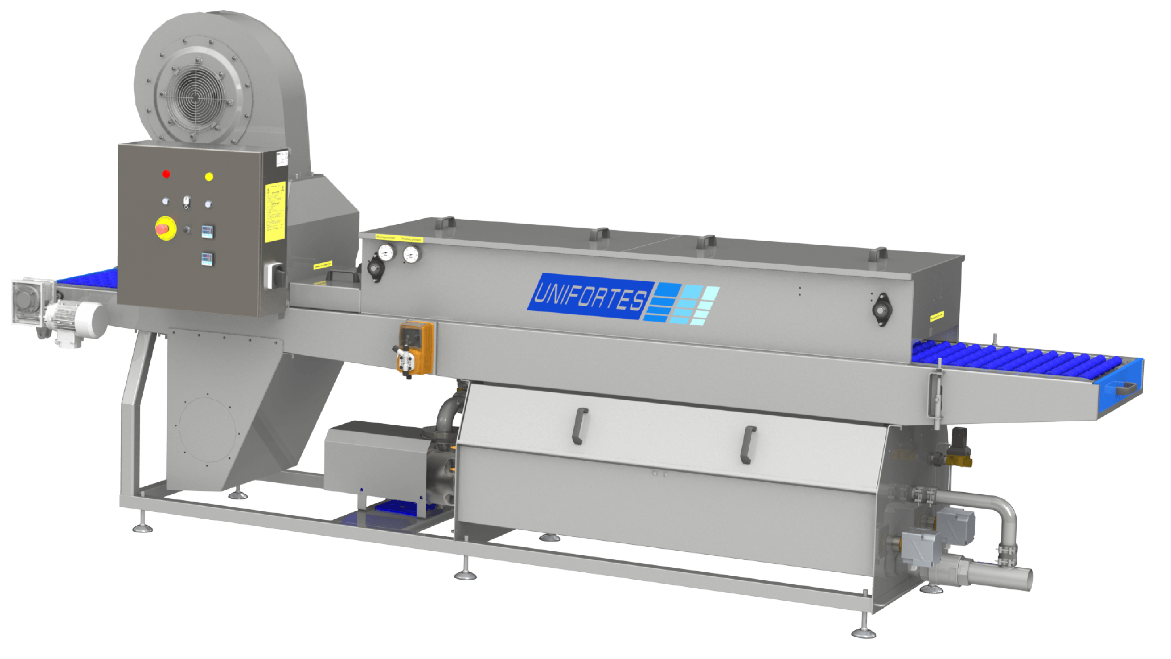 Mașina de spălat ouă profesionala are o construcție modulară, fiind proiectată pentru a oferi capacități flexibile și rezultate superioare de spălare. Acest echipament profesional pentru spălarea ouălor poate fi integrat perfect în linie cu diferite echipamente din industrie, precum mașini de spart ouă, echipamente de ambalare sau sortare (grader).