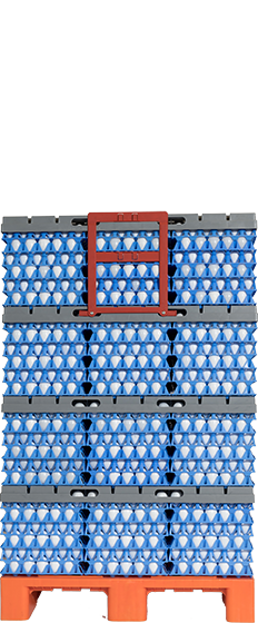 Sistem de transport și stocare oua nr.1 mondial (cofraje plastic (rezistenta peste 10 ani)/divizoare și paleti: