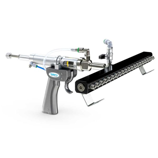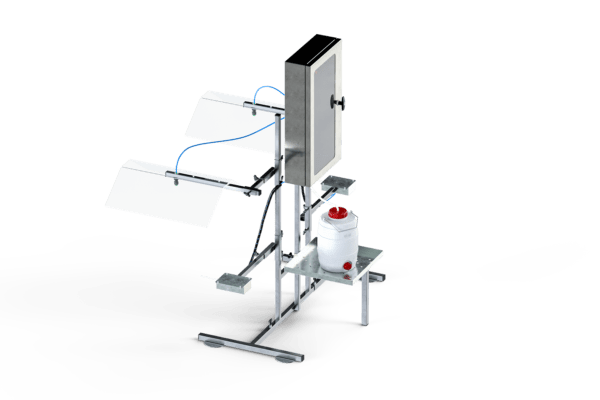 A connecting tube to the tank supplies the vaccine solution. Ceramic nozzles are used, which offer precise and constant parameters to be applied specifically to the vaccine being used.