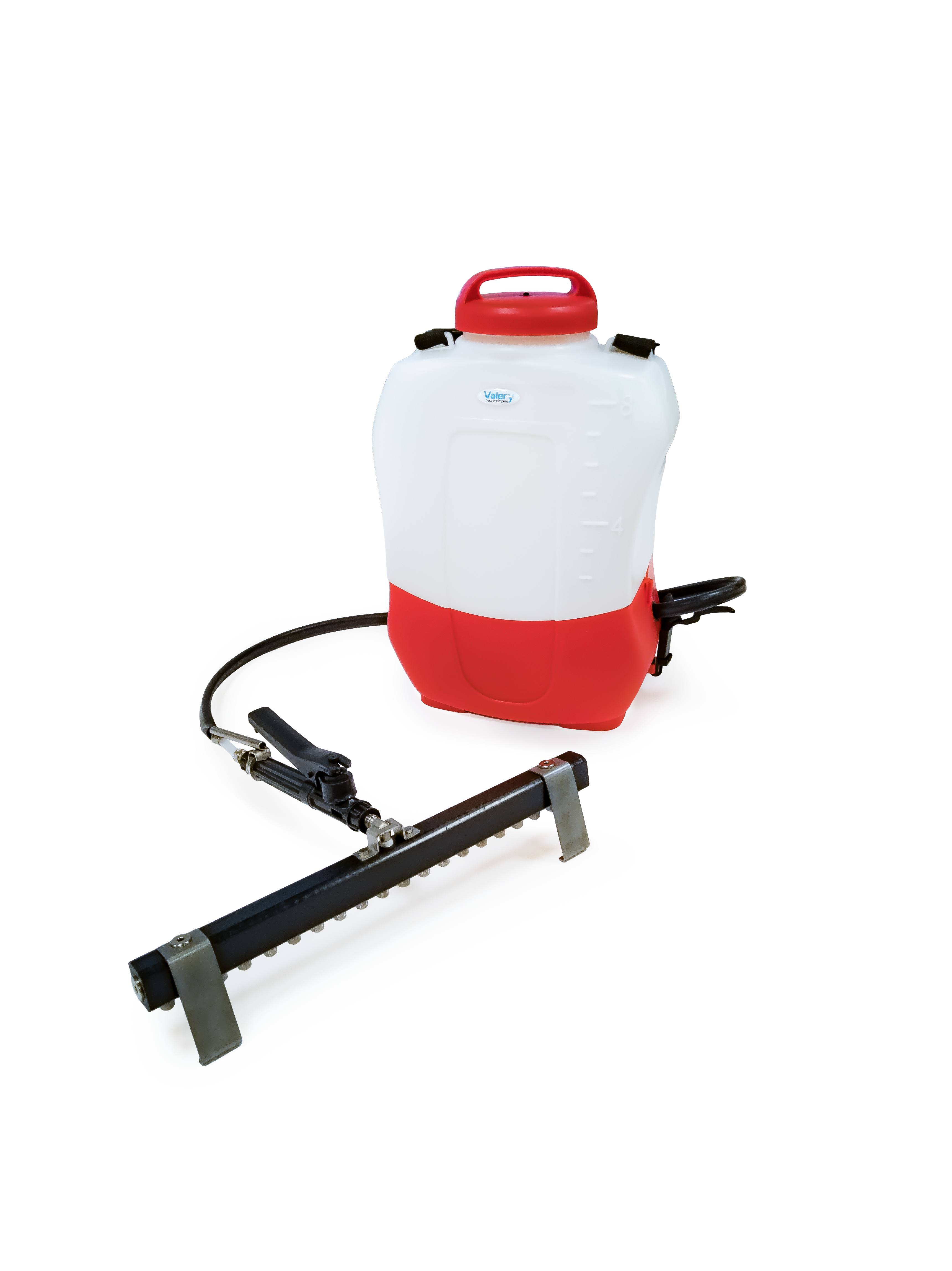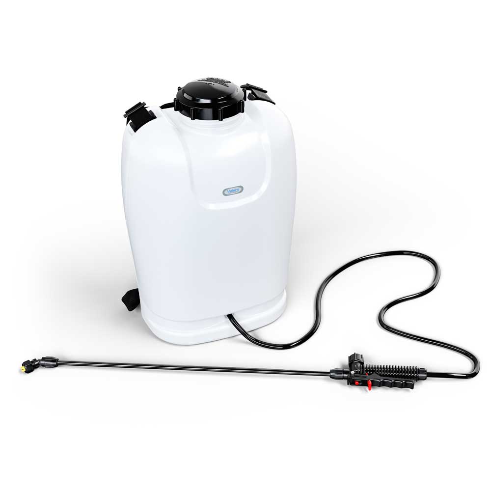 Electric backpack pump for spray vaccination inbox or on litter. The tank has an 18 l capacity and is powered by an electric pump with an autonomy of three continuous hours.